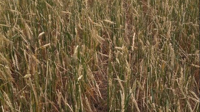 El trigo sufrió daños por granizo y viento.