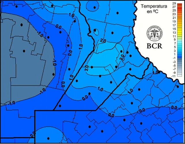 Este frente provocó las primeras heladas generalizadas en la región, dejando registros mínimos extremos en Hernando con -1,6°C, y Canals, con -1,2°C (Córdoba), así como en Chacabuco con -0,9°C (Buenos Aires) y Rufino con -0,6°C (Santa Fe). Hay entusiasmo entre los productores y técnicos por estos 1ros fríos: “es oportunidad para reducir la población de la chicharrita y bajar el riesgo para la proxima siembra de maíz”.