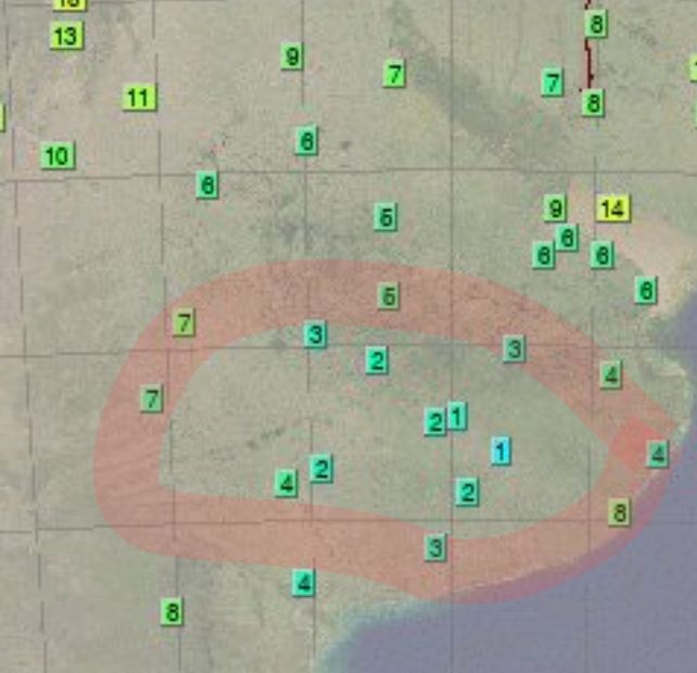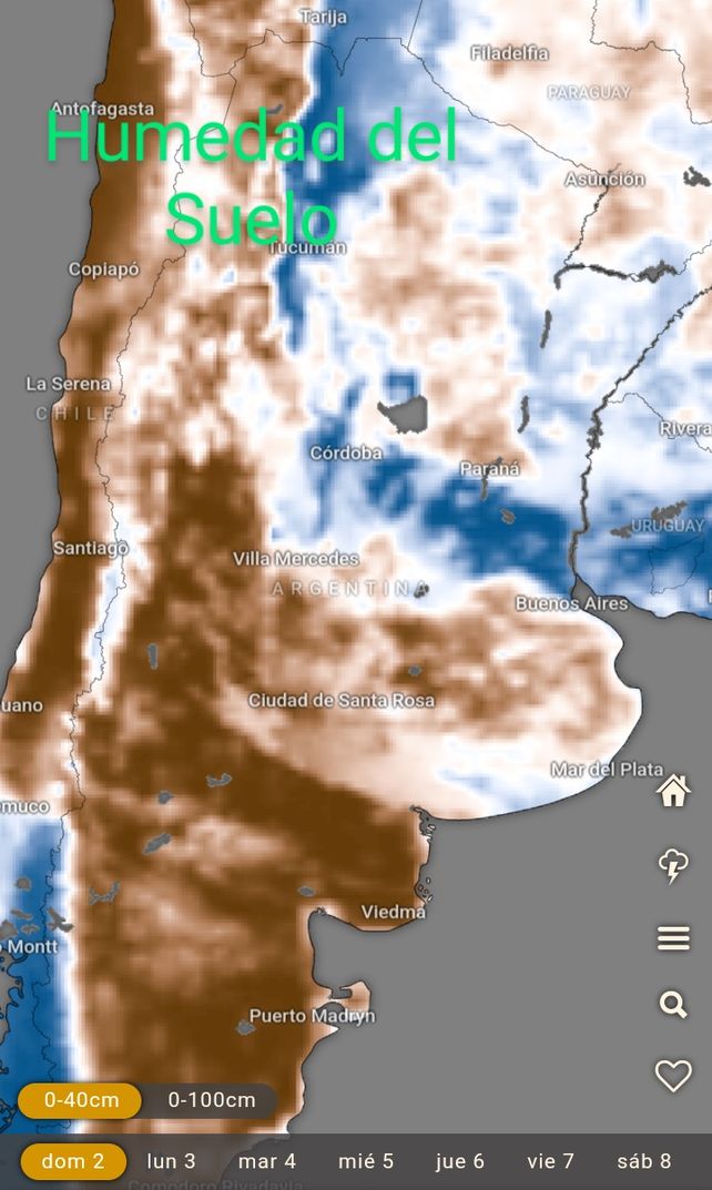 El siguiente mapa nos muestra la humedad que tiene el suelo en la región, después de mucho tiempo el color azul(denota humedad) comienza a mostrar que el suelo comienza a retener humedad y la sequía empieza a revertirse.