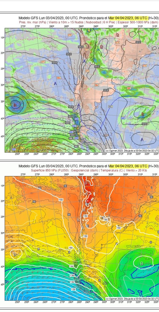 En en el mapa de precipitación se observan en la región lluvias superiores a los 75 milímetros (mm) siendo el segundo mes más lluvioso del año. También comienzan a notarse el avance de aire más frío.