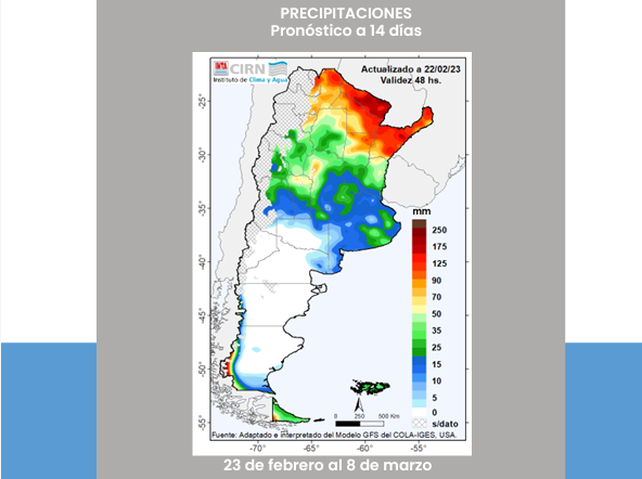 Las precipitaciones acumuladas que se esperan para las próximas dos semanas, no serían tan significativas para la zona núcleo.