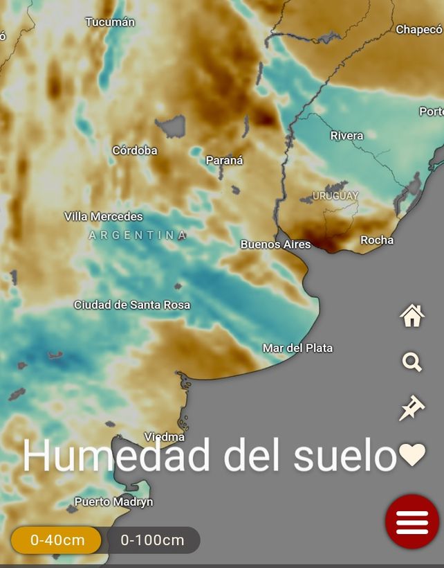 Si bien está temporada ha mejorado la cantidad de precipitaciones al ser muy espaciada la humedad del suelo todavía muestra valores muy secos . Los colores amarronados muestran signos de suelos secos . Solamente parte del sur del litoral y centro de Buenos Aires muestran signos de exceso de humedad.