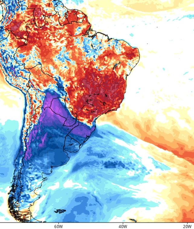 Tras la entrada de aire polar del próximo fin de semana los desvíos serán negativos, los colores azules ganan terreno y nos dejan la entrada de aire frío más importante en lo que va del año