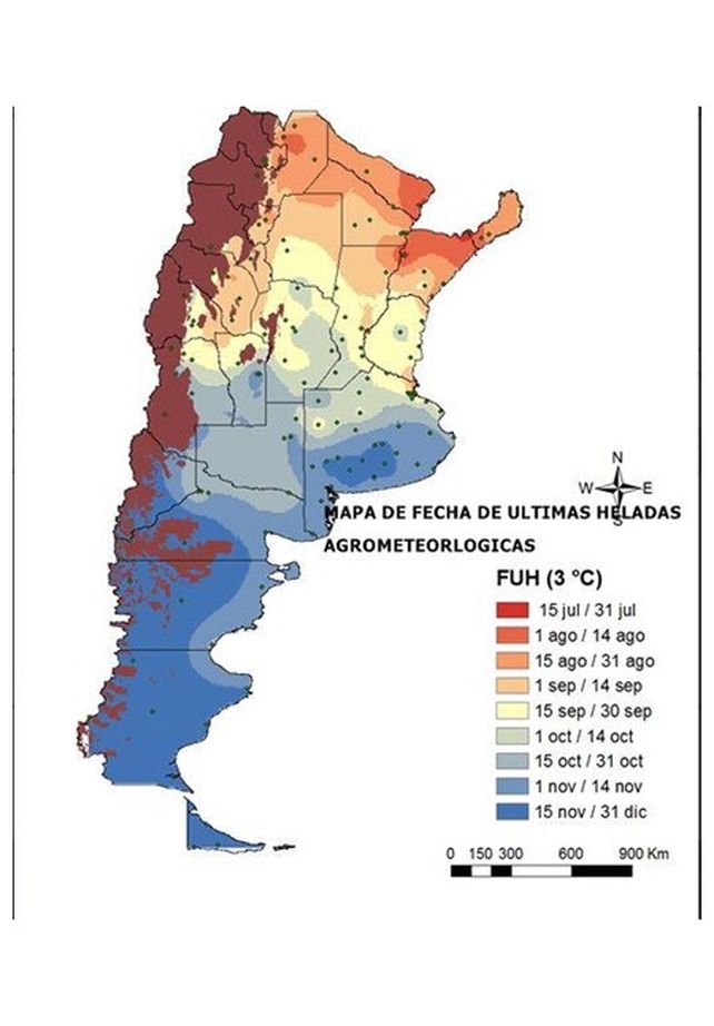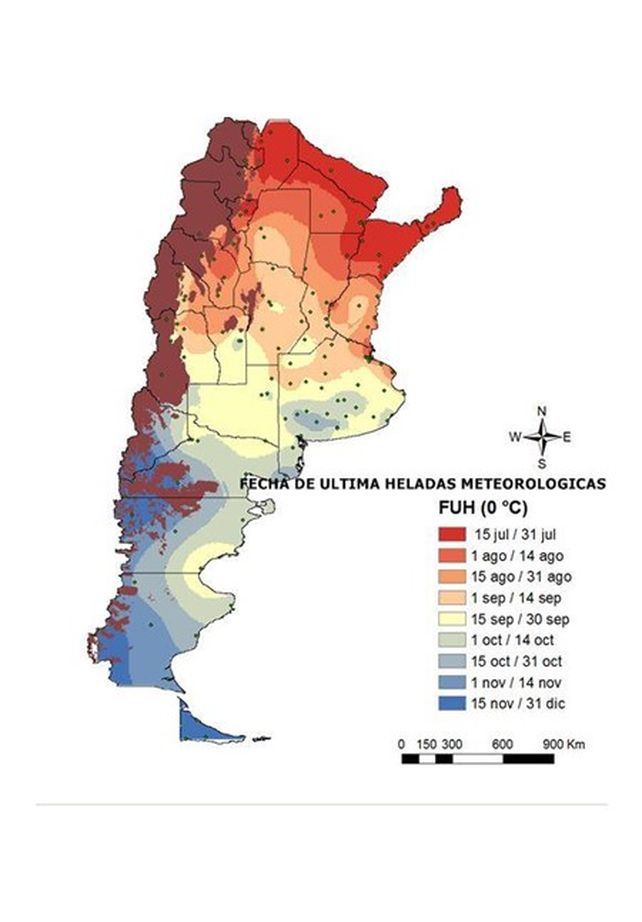 Mapa de las últimas heladas