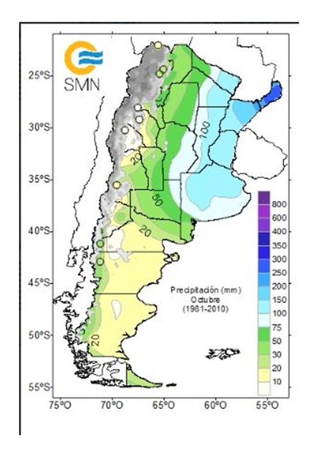 Por otra parte, hay que recordar que es uno de los meses más graniceros de la región. Los datos estadísticos muestran que las temperatura media para la zona oscila entre 16 y 22 grados, mientra las lluvias disminuyendo de este a oeste oscilan entre 50 a 100 mm.
