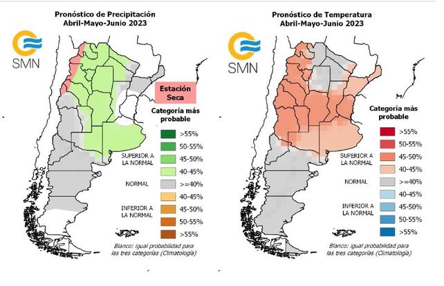 El mapa trimestral muestra por primera vez en tres temporadas colores verdes en precipitaciones ,lo que marca que es probable tener un otoño más lluvioso de lo normal, y también mas cálido , esa humedad y mayor temperatura harán que la posibilidad de lluvias sean más frecuente, también será un otoño con mucha nieblas especialmente en el Litoral.