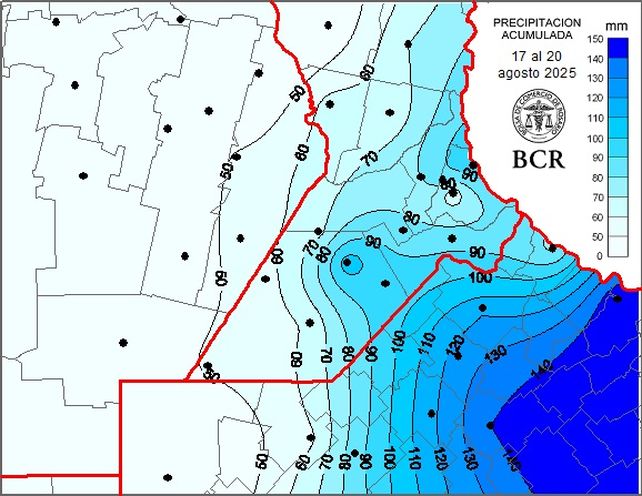 En julio ya se habían medido lluvias récord y agosto continuó con la misma tendencia. En localidades del noroeste de Buenos Aires se duplicaron e incluso quintuplicaron los valores normales del mes. Baradero acumuló 156 milímetros —70 de ellos en un solo día—, mientras que Chacabuco llegó a 146 y Pergamino a 126, con registros de más de 80 milímetros en apenas 24 horas. Rosario no estuvo ajena al fenómeno y alcanzó los 102 milímetros, de los cuales 76 se concentraron en las lluvias del último día.