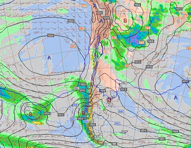 El frente frío que avanza desde la Patagonia genera una situación de inestabilidad, y durante esta época del año, hay más energía para dejar algunas tormentas en el sector. De todos modos, como la humedad en las capas medias de la atmósfera es baja, estos sistemas de mal tiempo son aleatorios y dejarán pocos acumulados.