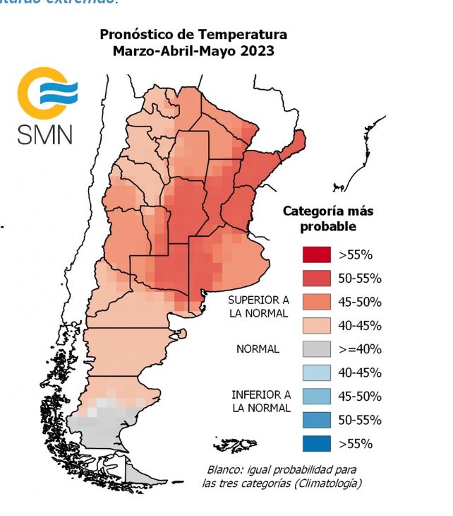 Con la llegada de la nueva estación el servicio meteorológico nacional informa la tendencia climática . Para la zona núcleo se ve un otoño más cálido de lo normal y lluvias estacionales. Al ser más cálido será frecuente la formación de intensas nieblas .