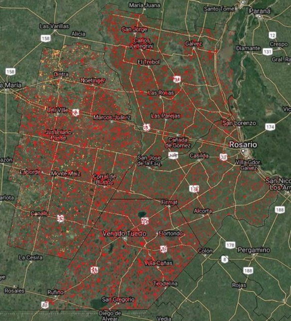 El relevamiento precisa unas 509 mil hectáreas de maíz para el ciclo 2020/21 en el centro sur de Santa Fe y 426 mil hectáreas en el este de Córdoba (departamento Marcos Juárez y Unión), según las imágenes del satélite Sentinel-2. Los datos satelitales muestran que se sembró en territorio santafesino un 6% menos que el ciclo pasado, mientras que en el este cordobés se sembró un 1% más. Se recorrió la zona bajo estudio, se georreferenciaron más de 2.500 puntos y se volcó toda la información en la plataforma de Google Earth Engine para el procesamiento.