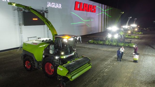 Con un desfile de “modelos” que iluminó la noche en la planta de Oncativo, Claas lanzó oficialmente en Argentina las nuevas picadoras Jaguar 1000, las Jaguar Green Eye y el portfolio completo de línea verde y tractores.