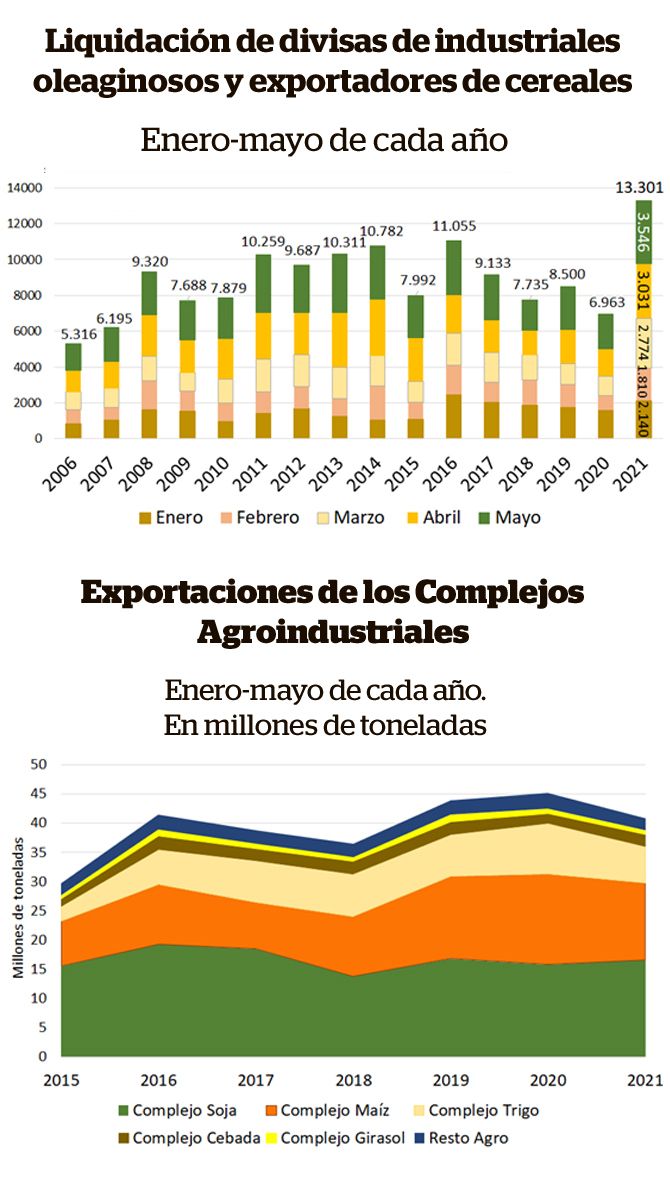 La agroindustria aportó u$s 13.300 millones en divisas durante los primeros cinco meses del año y así mayo se convirtió en el de mayor liquidación de la historia.