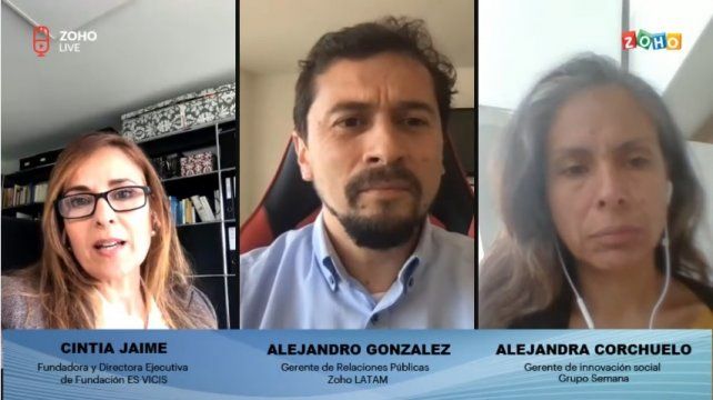 Del panel también participaron el gerente de Relaciones Públicas de Zoho LATAM, Alejandro González, y Alejandra Corchuelo, gerente de Innovación Social de Grupo Semana de Colombia, con experiencia en desarrollo social y políticas públicas.